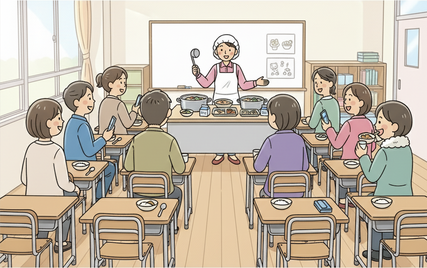 子どもたちが毎日食べている給食を、保護者の皆さまにも味わっていただくための行事です。学校と育友会が協力して、毎年開催しています。